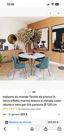maisons du monde Tavolo da pranzo in vetro effetto marmo bianco e metallo color ottone e nero per 5/6 persone Ø 120 cm come nuovo