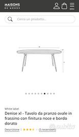 tavolo ovale in frassino con finitura in noce e bordo dorato.