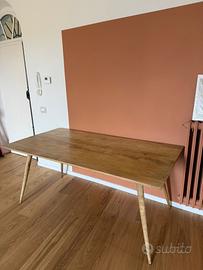 Tavolo da pranzo Maisons du Monde in legno massello di Mango. Misure: 175.5cm (lunghezza) x 91cm (larghezza) x 75cm (altezza) Trattato con impregnante opaco e in ottime condizioni a parte il difetto visibile nell’ultima foto