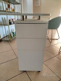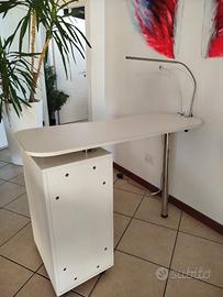 Tavolo per manicure, colore bianco, 3 cassetti apribili, larghezza 1.10cm profondità 48cm, altezza 73cm.