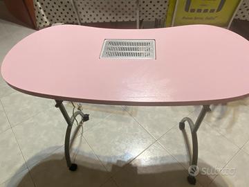 Tavolo per manicure pieghevole , color rosa , con aspiratore .