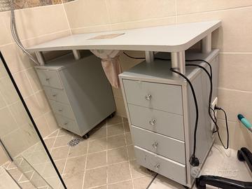 Vendo Tavolo per manicure con aspiratore, per cambio mobilio. lo stato e ottimo e mantenuto bene. Sono presenti 8 cassetti e prese incorporate per la connessione di lampade o accessori necessari. Ha le ruote per spostamento e blocco per evitare che si muova.