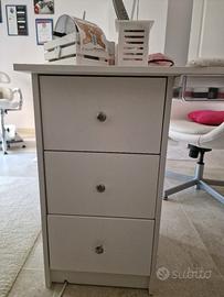Tavolo manicure con 3 ripiani a destra e 3 cassetti a sinistra in colore bianco...