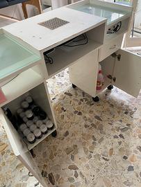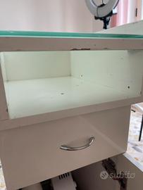Vendo tavolo (solo tavolo senza prodotti che sono presenti nella foto )per estetista senza aspiratore , vendo per inutilizzo. Ritiro tra un mese . E danegiato ma e utilizzabile