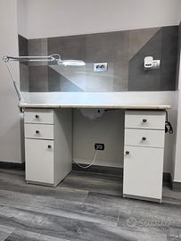 Vendo causa inutilizzo un tavolo da manicure composto da due colonne laterali realizzate in legno multistrato e un piano in legno massello (quindi si può levigare e riverniciare molte volte).