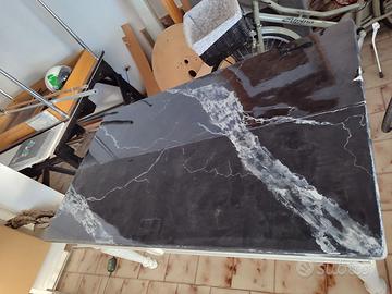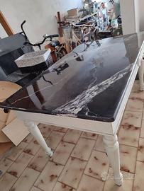 Vendo tavolo vintage in vero legno con lavorazione in resina effetto marmo sopra....Da restaurare ma ancora molto bello