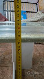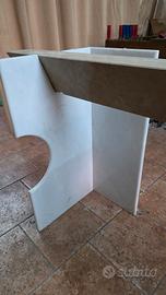 Tavolo realizzato artigianalmente, con base in marmo di trani e bianco di carrara. Parte superiore in cristallo di circa 2 cm. Pezzo unico.