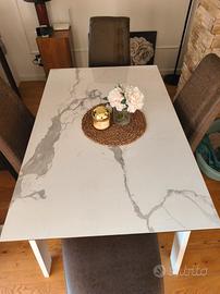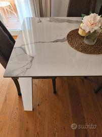 tavolo da pranzo rettangolare allungabile, effetto marmo in gres.