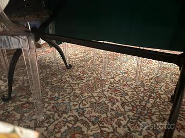 Tavolo con base in ghisa anni 60/70 e cristallo spesso 1,5 cm 80x180 cm ovale adatto sia x interni che arredo giardino il vetro presenta due scheggiature