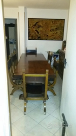 Splendido tavolo massello di castagno, stile spagnolo, lunghezza 240 cm., altezza piano 7 cm. Più 6 sedie con seduta in cuoio. Il tutto a euro 500!