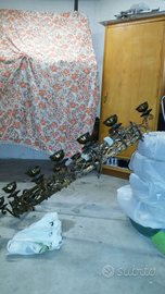 IN REGALO lampadario in ferro battuto ramato, con 16 bocce di vetro (in foto è visibile solo 'lo scheletro del lampadario perché le bocce di vetro gialle e le catene per appenderlo sono in uno scatolone per il trasloco. Ovviamente sarà possibile visionarle assieme al tavolo e alle sedie, se siete interessati). Adattissimo sia per una taverna che per la sala. Perfetto x la seconda casa in montagna