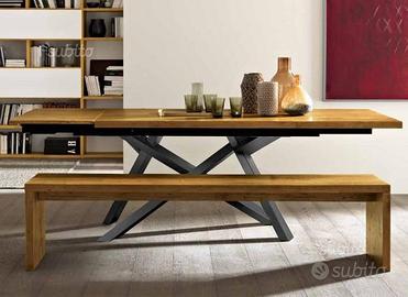 QUESTO ARTICOLO RIENTRA NEL "BONUS MOBILI" CON DETRAZIONE DEL 50% DELLA SPESA (bonus legato alla ristrutturazione dell' immobile) VISIBILE PRESSO LA NOSTRA ESPOSIZIONE con un diverso tipo di basamento Il prezzo si riferisce alla misura 180 x 90 cm con finitura anticata e piano scortecciato sui lati lunghi VIC è un tavolo fisso caratterizzato da finiture di pregio ed è perfetto per la zona living. Il tavolo da soggiorno CROSS ha il piano in legno massello con bordi squadrati o Bordi Scortecciati sui lati lunghi del piano, ed essendo in legno naturale, presenta leggere venature, nodi e differenze di colore che contribuiscono a rendere il tavolo ancora più prezioso. Il piano ha uno spessore di cm. 4. Il basamento é in ferro laccato antracite opaco . Dimensione gambe 100 x 50mm - Misura ingombro base gambe: 110 x 60 cm. Il Tavolo Mod. Cross è disponibile anche nelle misure: 160 x 90 cm. 180 x 90 cm. 200 x 100 cm. 220 x 100 cm. 240 x 100 cm. Possibilità di avere allunghe esterne 60x 90/100cm Vari tipi di finitura a vostra scelta Siamo aperti tutti i giorni della settimana dal lunedi al sabato dalle 8,30 alle 12,30 e dalle 15,30 alle 19,30 Domenica pomeriggio SOLO SU APPUNTAMENTO CI TROVIAMO IN VIA CAMPIGLIONE ,40 A BASTIA UMBRA (PG) NT snc Mostra numero MOBILI NT SNC DAL 1985