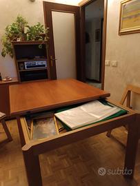 Tavolo massello in noce nazionale 105x105 allungabile a libro con vano ripostiglio. Misure aperto 210x105