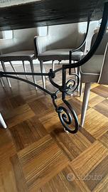 Splendido tavolo maxi in legno massello decapato, proveniente dalla provenza con base in ferro battuto di colore nero, nel prezzo sono incluse 8 poltroncine in tessuto di colore ecru in ottimo stato con 8+ 8 coprisedute in velluto in vari abbinamenti di colore. Il tavolo può essere staccato dalla base per ritirarlo, è comunque un oggetto pesante.