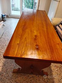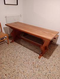 Solido tavolo, tipo fratino, primi anni 70, ottimo per taverna, in buono stato e con belle venature, nessuna tarlatura. Misure 190 x 68, altezza 78cm, spessore del piano tavola 4,5cm. Dato il peso e le dimensioni, non posso spedire. Ritiro in loco a cura dell'acquirente, a Mestre, secondo piano. Il prezzo è di 200 euro e non è trattabile. Se l'annuncio e visibile online significa che è ancora disponibile.