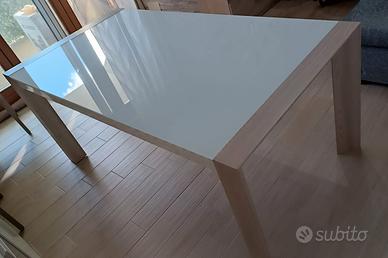 Tavolo Maxiwood 180x90 cm allungabile, finitura olmo perla e vetro.