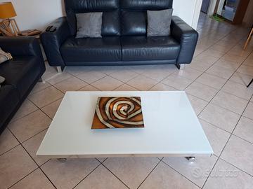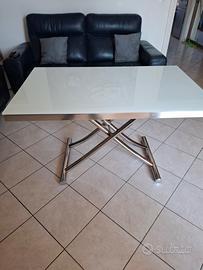 tavolo in vetro e gambe in metallo- lungo 120 cm chiuso - aperto con 2 allunghi da 38 cm arrivando con apertura totale fino a 196 cm