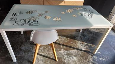 Vendo bellissimo tavolo in ottime condizioni, formato da telaio in metallo bianco con gambe smontabili e piano in vetro serigrafato che lo rende adatto ad ogni tipo di arredamento. Misure 160x80. Ritiro in loco.