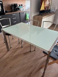 Vendo tavolo con piano in vetro satinato e gambe in acciaio inox allungabile Misure: Lunghezza 125 cm Larghezza 85 cm Altezza 75 cm