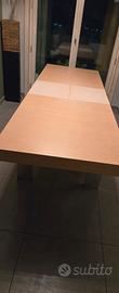 Tavolo Misura Emme "Axis" in legno Rovere Chiaro 200/250 x 85 x 9 cm apribile da 200 a 250 cm. Finiture: piedi e mascherine laterali in acciaio inox.
