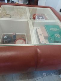 Tavolo salotto in vera pelle anni '70, contenitore bar, vetro temperato. Ritiro di persona.