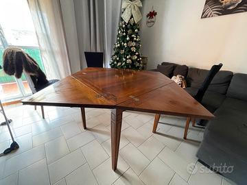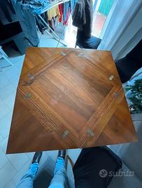 Mobile di pregio in noce nazionale massello, , con piano quadrato allungabile tramite 4 alette pieghevoli. produzione italiana, non paragonabile a tavoli moderni industriali.
