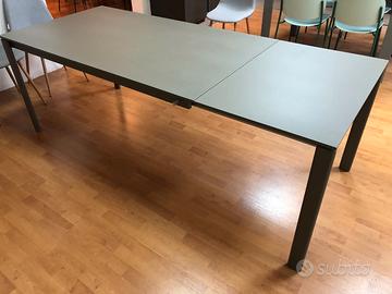 Tavolo modello Oscar di Ingenia con allunga telescopica con meccanismo per nascondere l'allunga all'interno. Le misure sono 160x90 chiuso e 220x90 aperto. Il piano l'allunga e la struttura sono in metallo verniciato "fango". Il piano ha un leggero segno. Non spedisco, possibilità di smontare il tavolo per il trasporto. Tavolo d'esposizione, mai usato.