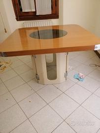 Vendo tavolo modernariato quadrato con spigoli stondati con al centro un vetro tondo