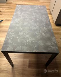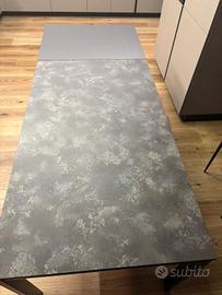 tavolo moderno e rettangolare, Design industriale. Si caratterizza per la linea squadrata ed essenziale. struttura in acciaio, piano in laminato materico color antracite effetto nuvolato e allunga in melaminico.