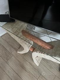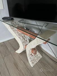 Tavolo elegante e moderno a V base realizzata in pietra fossile colore bianco mactan forma a V con due sezioni in finto marmo.