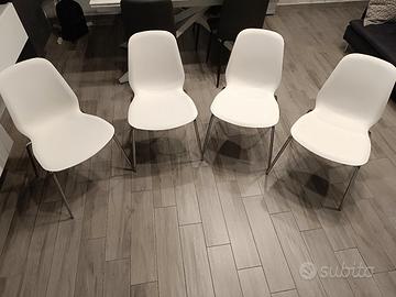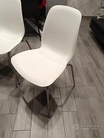 Tavolo moderno allungabile da cm 90x90 estensibile fino a cm 180 con struttura in metallo e piano laminato in legno di spessore 18 mm di 2 colori: bianco e rovere chiaro (cm 90/180x90x76h) in ottimo stato come da foto unitamente a n.4 sedie colore bianco e struttura cromata.