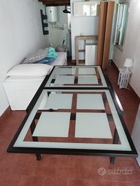 Tavolo moderno, legno e vetro temperato di alta qualità, misura 90x90 oppure 90x180 cm. Presenta graffi sulle gambe ma si può ritoccare benissimo con vernice. No perditempo Grazie.