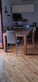 Tavolo 160 x 90 allungabile fino a 220 color rovere moderno. Buono stato soltanto qualche abrasione sulle gambe. Comprensivo di vetro di protezione trasparente.
