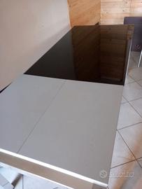 Vendo tavolo moderno allungabile con piano in vetro nero e struttura in metallo.