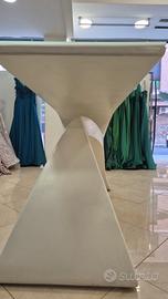 Materiali: Base in vetroresina sagomata e rinforzata con struttura in legno piano in vetro. Dimensioni: Lunghezza 160 cm x Profondità 60 cm x Altezza 88 cm (altezza ideale anche come console o desk accoglienza).
