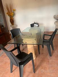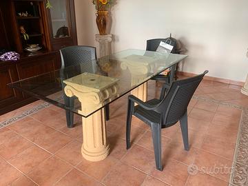 Tavolo moderno con base di vetro e capitelli