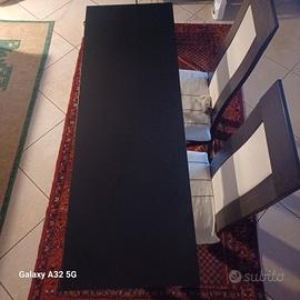 Vendo tavolo moderno colore testa di moro per 4 persone acquistato da Mobili Garnero a 305 euro ( fattura dimostrabile) Gambe in acciaio. Lunghezza 1.20, larghezza 80 cm. il tavolo può essere usato anche come consolle appoggiato al muro e le misure diventano 1.20 cm di lunghezza e 40 cm di larghezza. Il tavolo viene venduto perché mi serve uno più piccolo. Ho anche 4 sedie in legno massello con seduta lavabile se interessati. Il tavolo viene venduto a 100 euro ed è in ottimo stato. Le 4 sedie le vendo a 15 euro l'una. Hanno qualche segno di usura sulle gambe, per il resto sono perfette. Se interessati vi faccio avere le foto. Tutto insieme 160 euro. Ritiro a proprio carico!