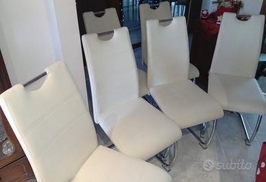 TAVOLO DA SALA molto bello e massiccio - misure 2 metri per 90 cm. completo di 6 SEDIE modernissime in similpelle bianca e acciaio. NO SPEDIZIONE !