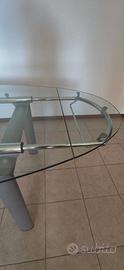 Telaio in metallo cromato con piano in cristallo temperato.