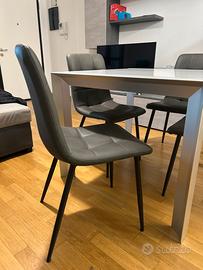 Vendo elegante tavolo da pranzo moderno con piano in vetro satinato e struttura in metallo, completo di 4 sedie imbottite originali Mondo Convenienza, colore grigio antracite.
