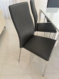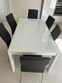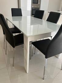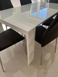 Vendo tavolo moderno con piano in vetro temperato bianco e 6 sedie in eco pelle nera,che regalo vicino al tavolo.