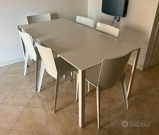Tavolo in acciaio Molteni Less Less completo di giro sedie.