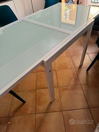 Quadrato 90x90 cm allungabile fino a 180cm ottimo stato a parte qualche graffio sul vetro non visibile a tavolo chiuso (vedere foto) Ritiro a Maccarese Necessario furgoncino perché non smontabile