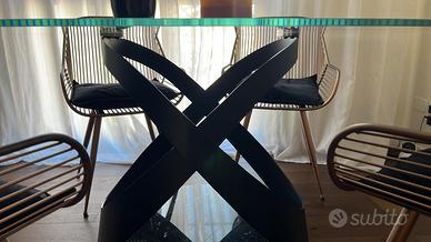 Tavolo ovale TONIN base ferro anodizzato colore nero opaco con base in marmo. Lunghezza 180 cm Larghezza Max 120 cm
