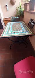 vendo Tavolo per esterno in mosaico e ferro con 4 sedie abbinate 120x 80