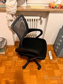 Tavolo bianco con adesivo removibile nails. Lampada con lampadina da fissare al tavolo e sedia ergonomica comodissima