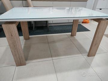 Tavolo da pranzo cm 150x90 allungabile a cm 200 bianco opaco con piedi color quercia naturale comprato 7 mesi fa come nuovo con vetro temperato di mm 6 aggiunto da me vendo per mancanza di spazio. il prezzo è trattabile
