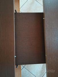 Tavolo come da foto, misure chiuso 140 cm con 1 prolunga 180 cm con 2 prolunghe 220 cm, larghezza 83 cm come da foto. Il colore è leggermente più scuro rispetto alle immagini. Ritiro zona Lago Patria