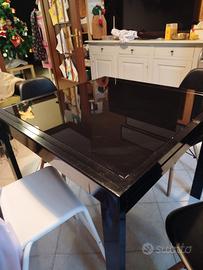 tavolo nero con piano in vetro chiuso 90x90 aperto 90x180