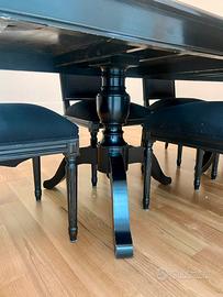 Tavolo nero da 6/8 persone e poltorncine.